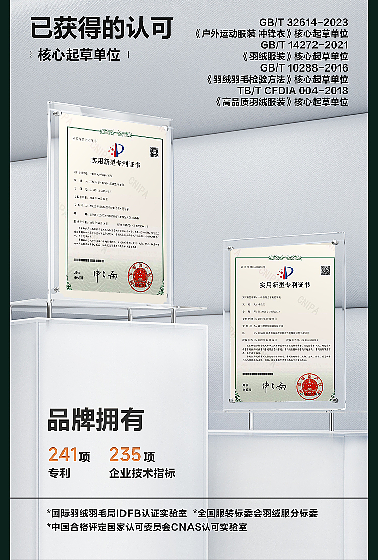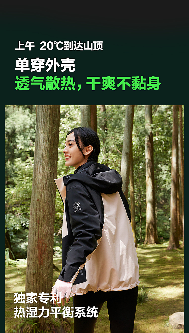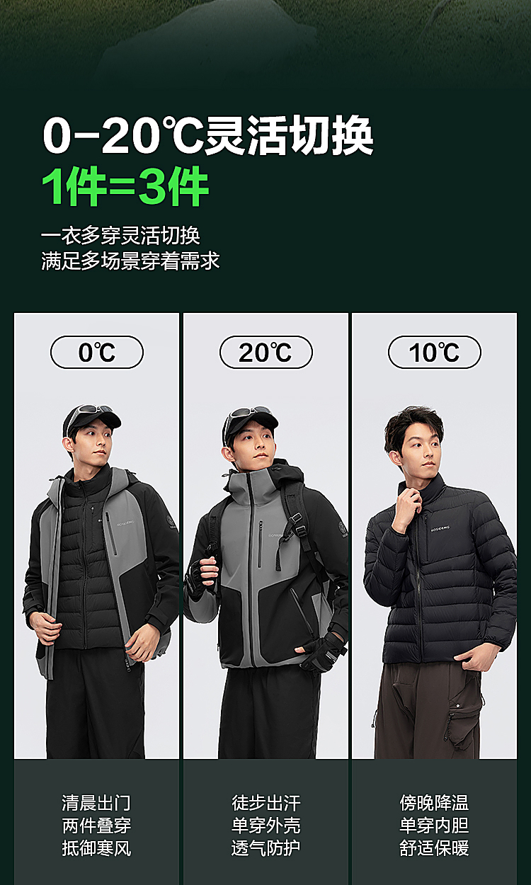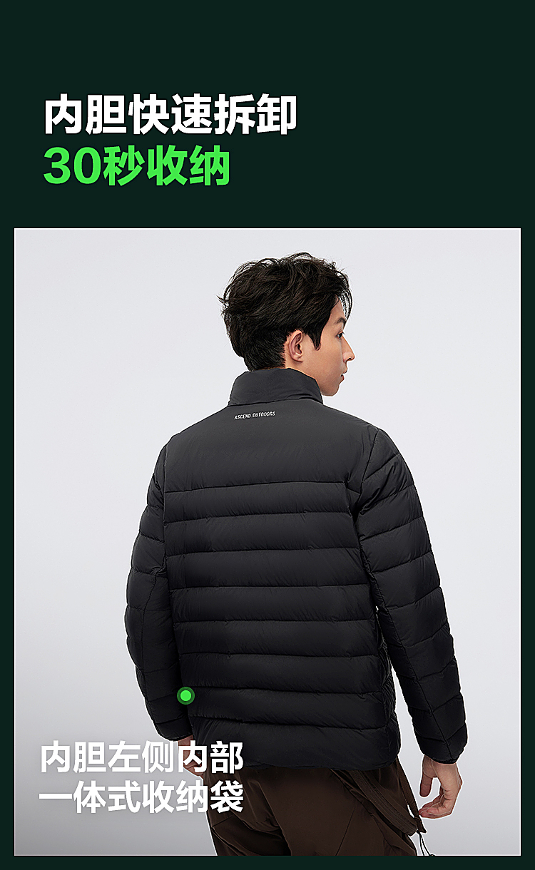 工艺:自主研发BO-Air呼吸体系,科技功能面料防风防水透视,700+蓬松度轻奢级鹅绒