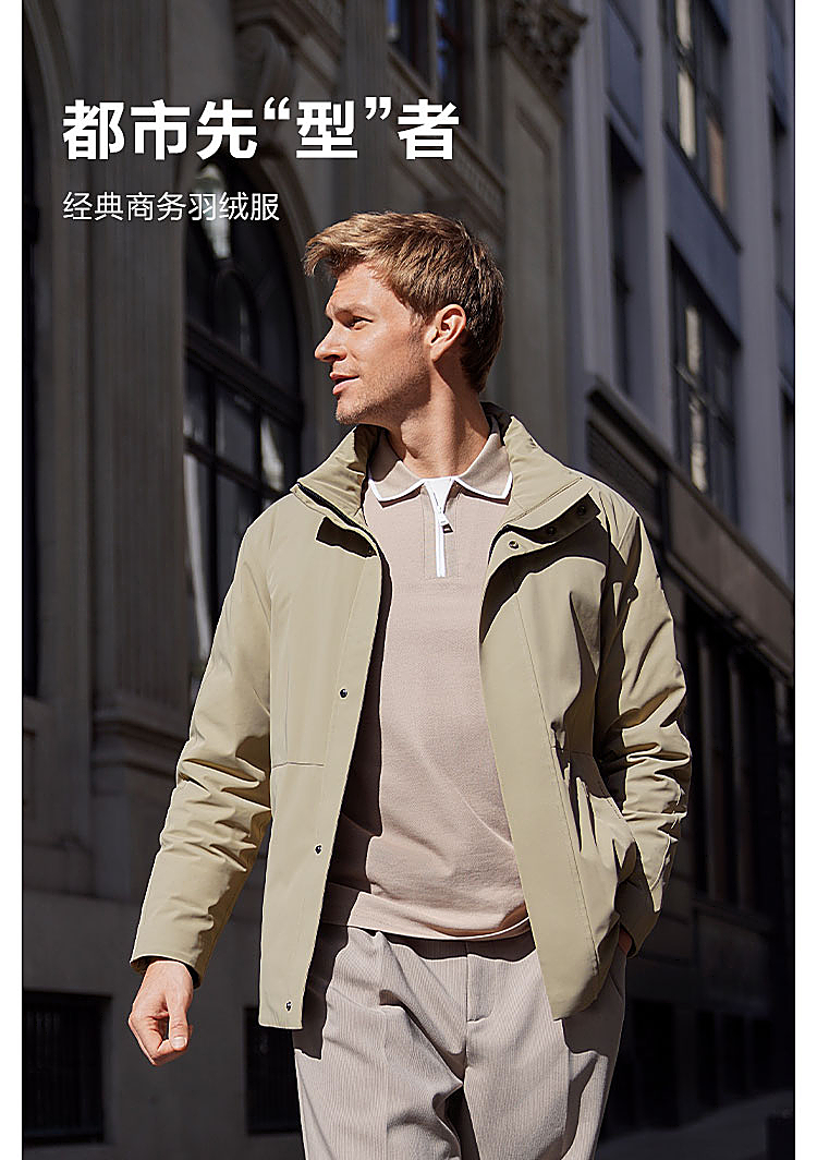 设计点:经典商务立领短风衣,内胆可脱卸,微机理面料,细腻挺括,红外线蓄热里布,借助人体温度迅速升温,持续保暖。