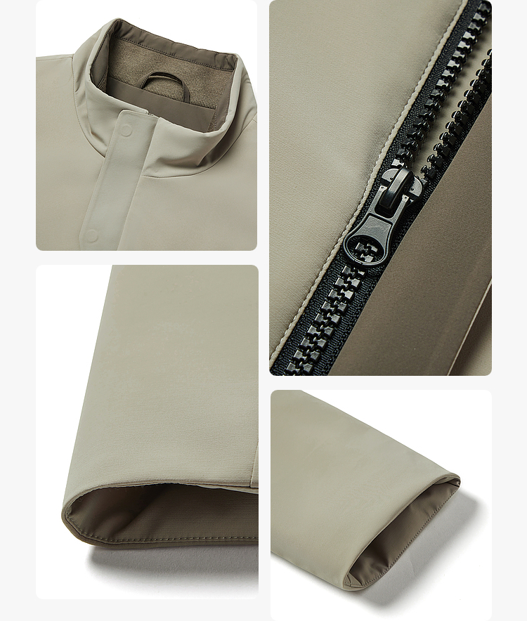 设计点:合体H商务版型,合体舒适,品质面料,紧致细腻,手感滑爽,品质卓越,内里直充绒工艺,无缝压胶,减少压线跑绒风险。