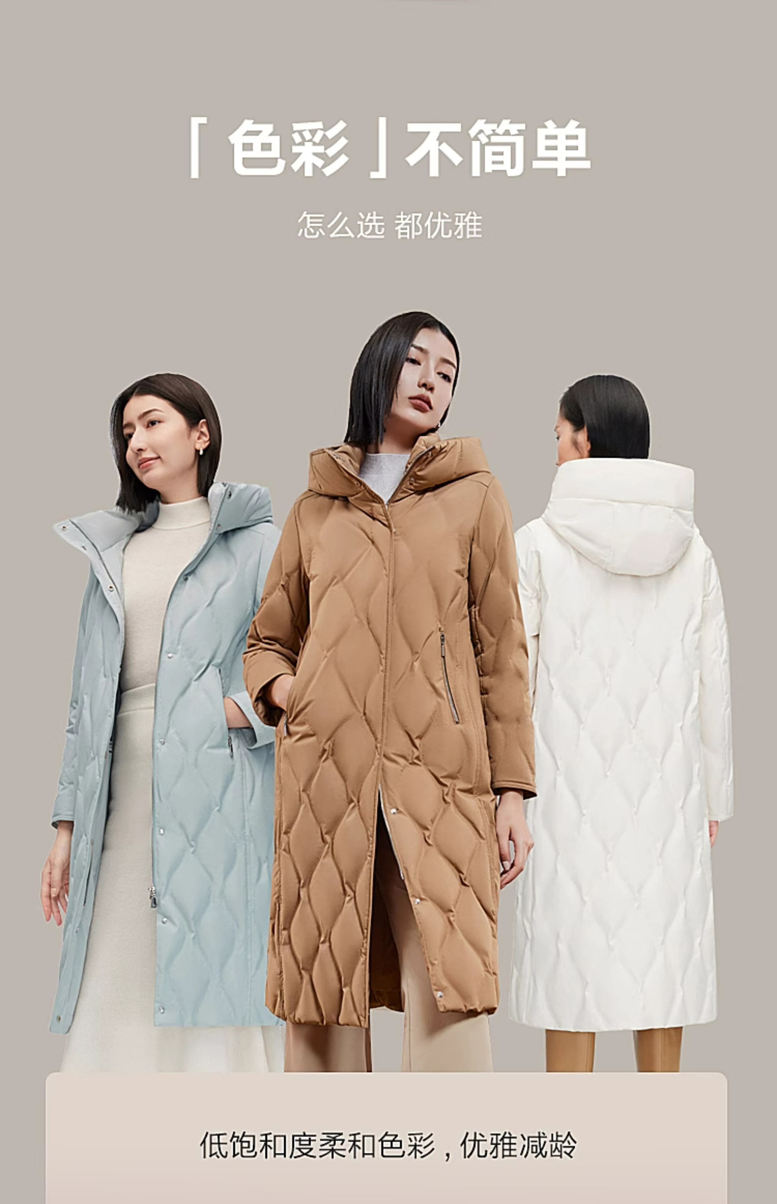 设计点:中长宽松版型,包容性强,30D棉柔面料,轻盈更品质,修长水波纹绗线,柔美显瘦。