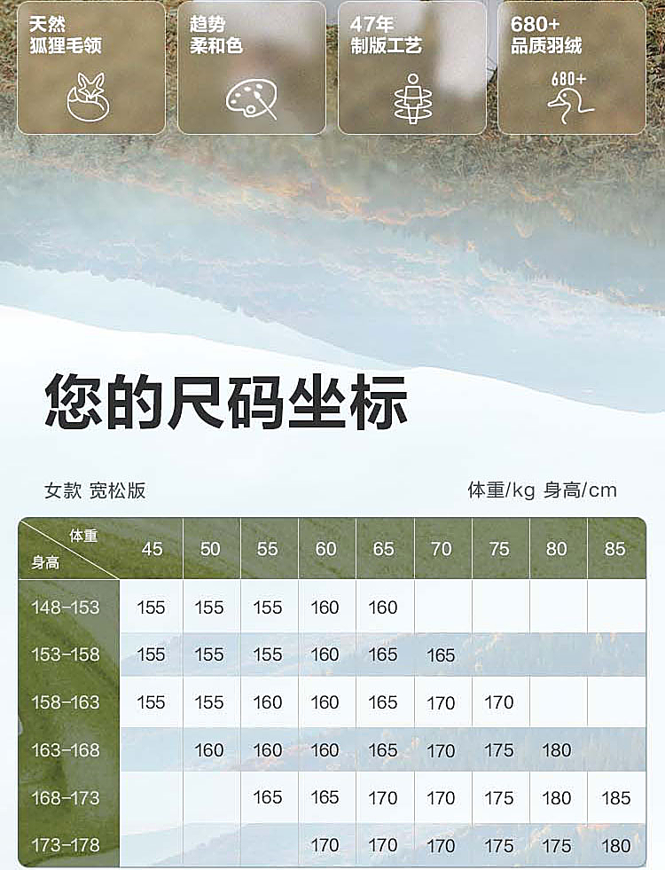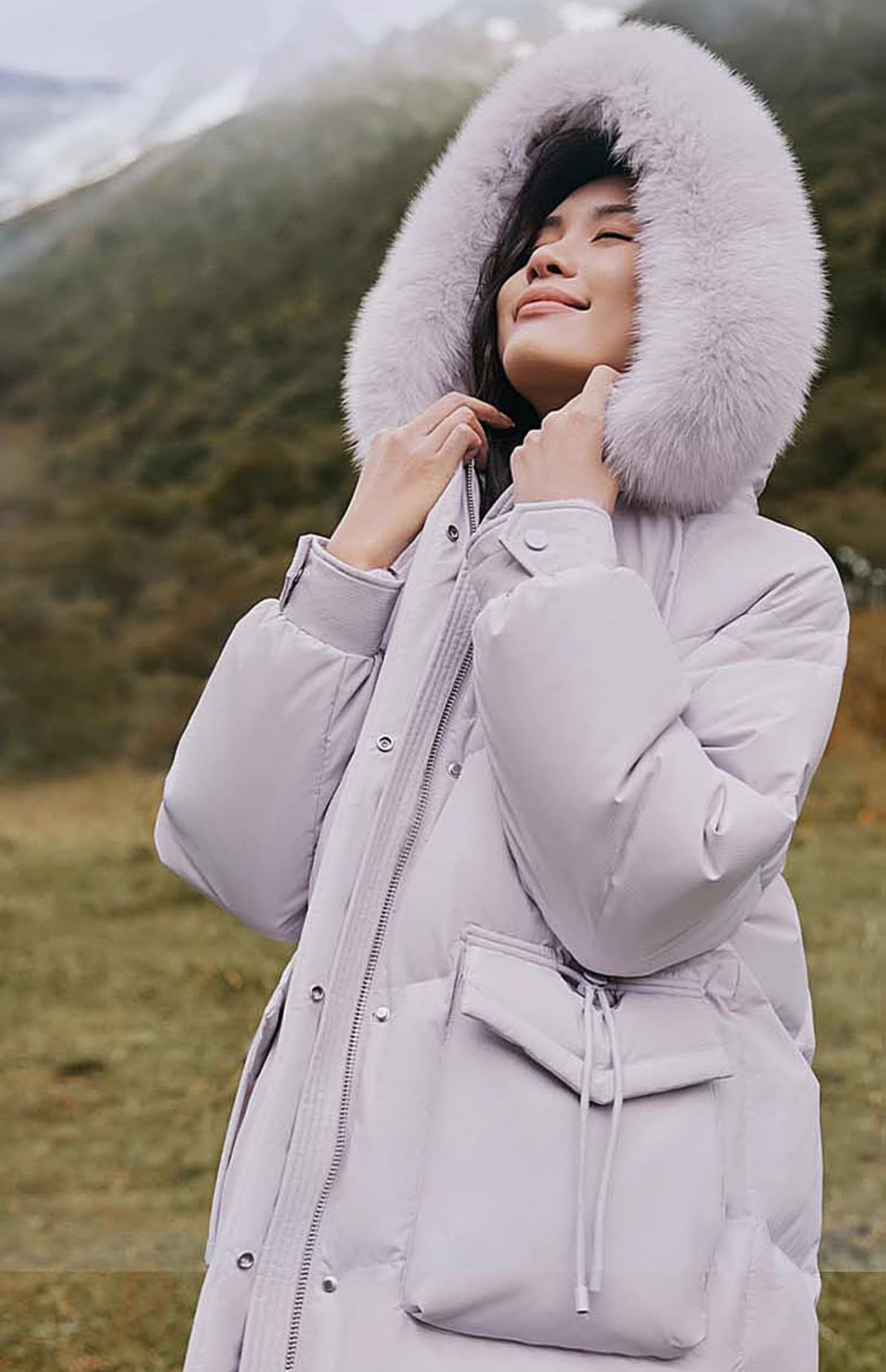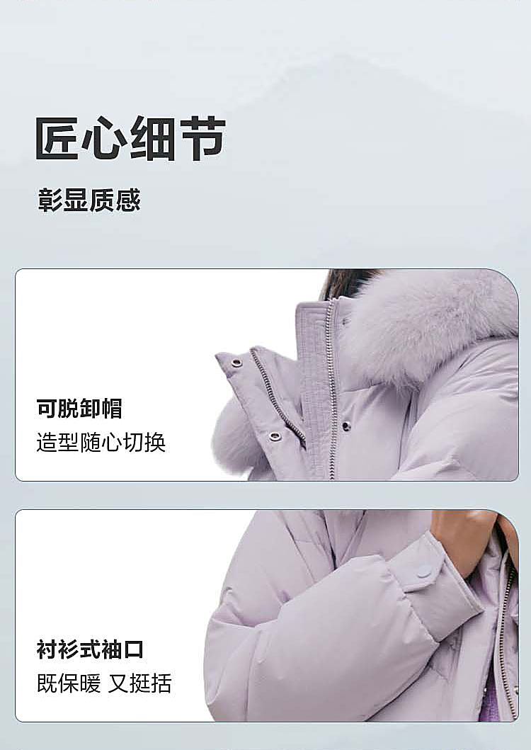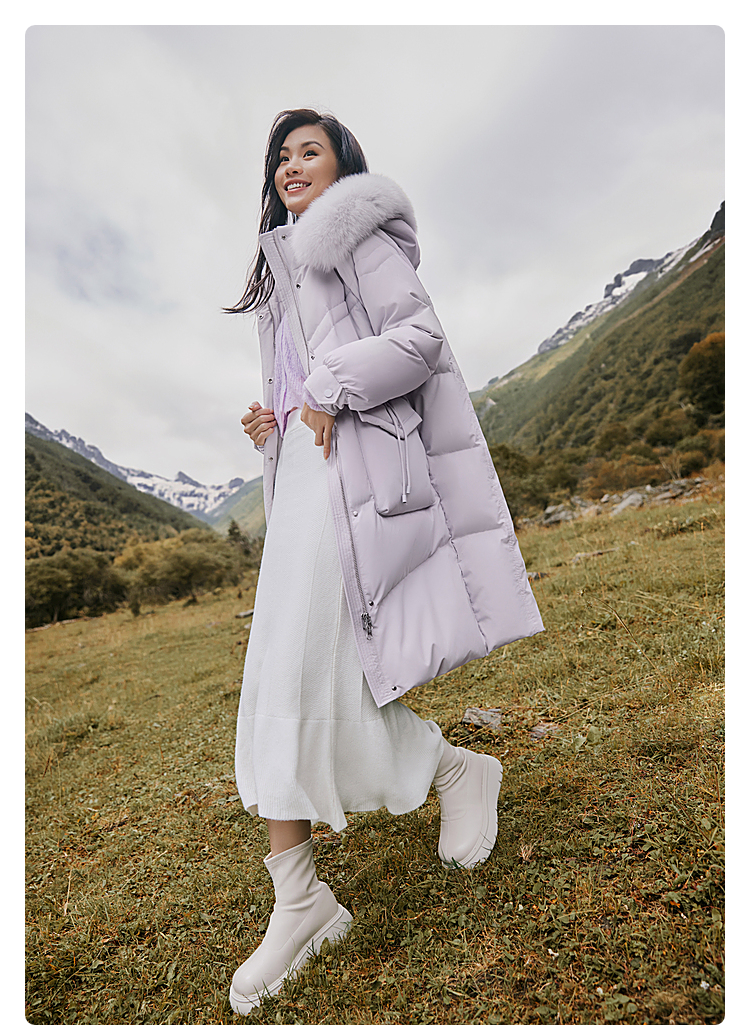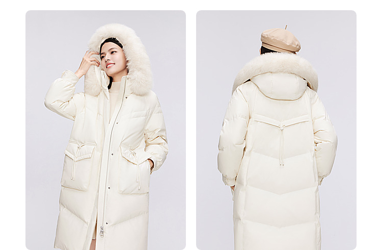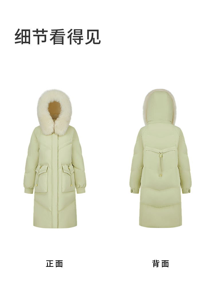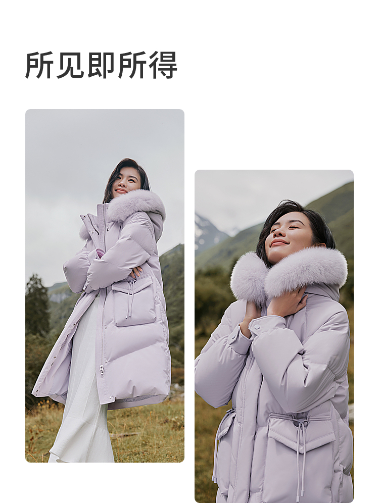 设计点:时尚廓形包容百搭,品质面料,防风保暖,芬兰进口天然狐狸毛领,蓬松柔软。