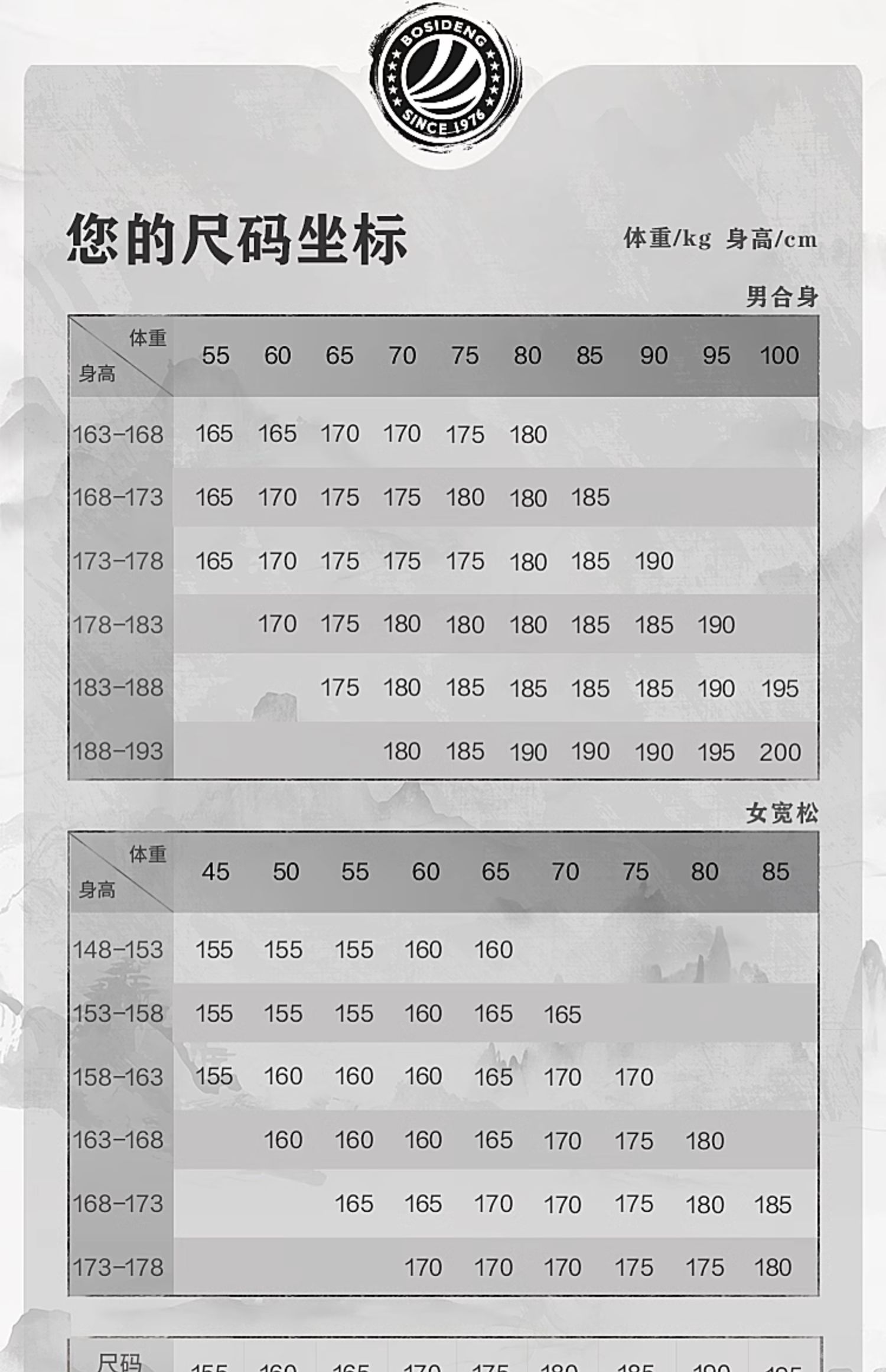 尺码:155-200