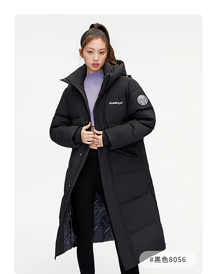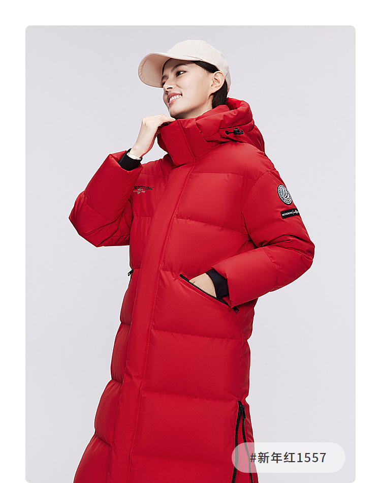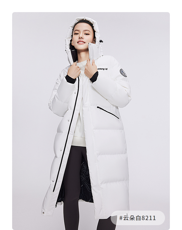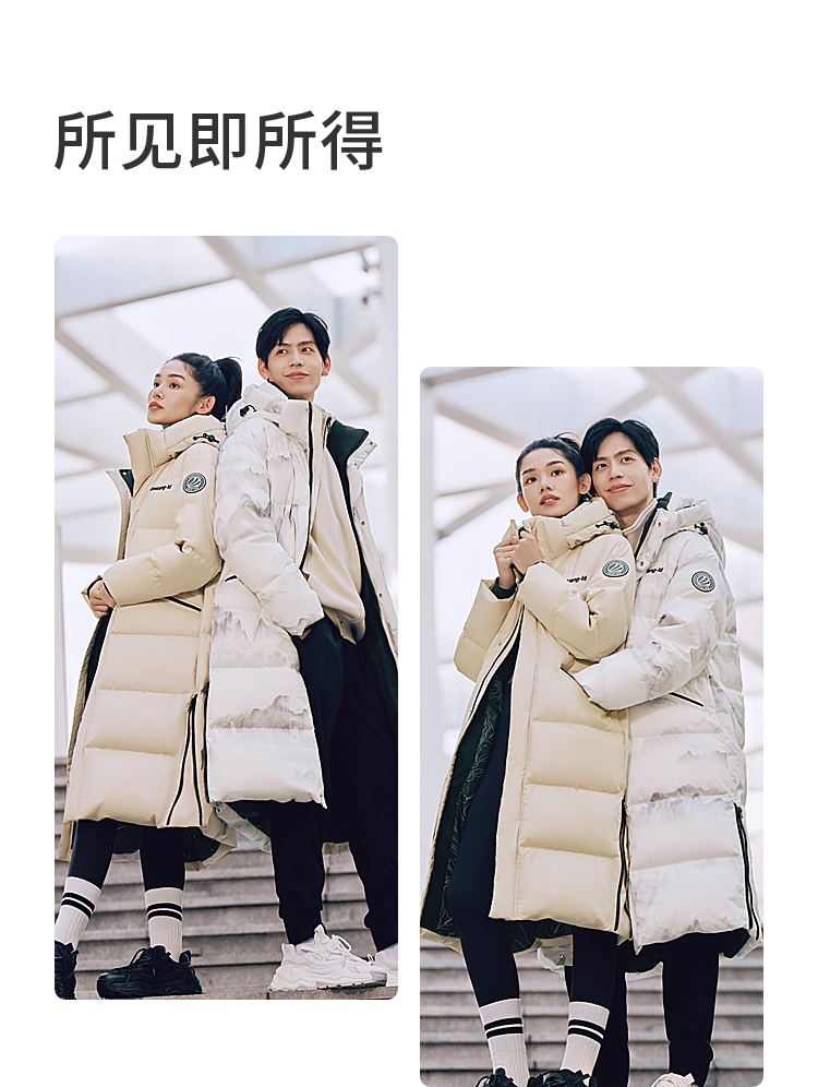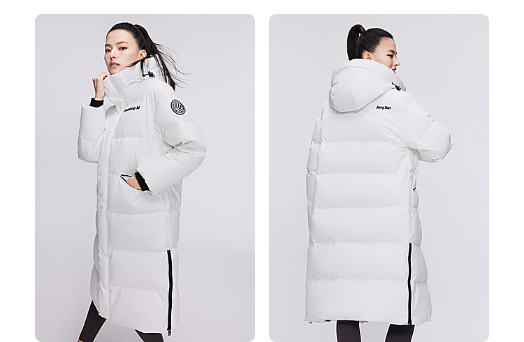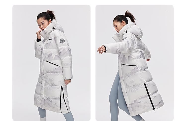 设计点:大长款满足冬季不同人群需求,侧边拉链穿脱方便不束缚,胸前绣花,3D标识及树脂辅料,彰显时尚运动感,严选90%新国际羽绒,轻盈保暖。