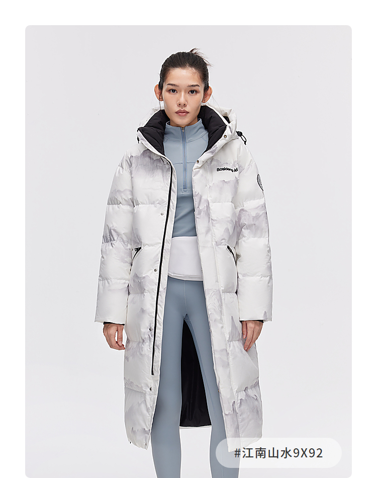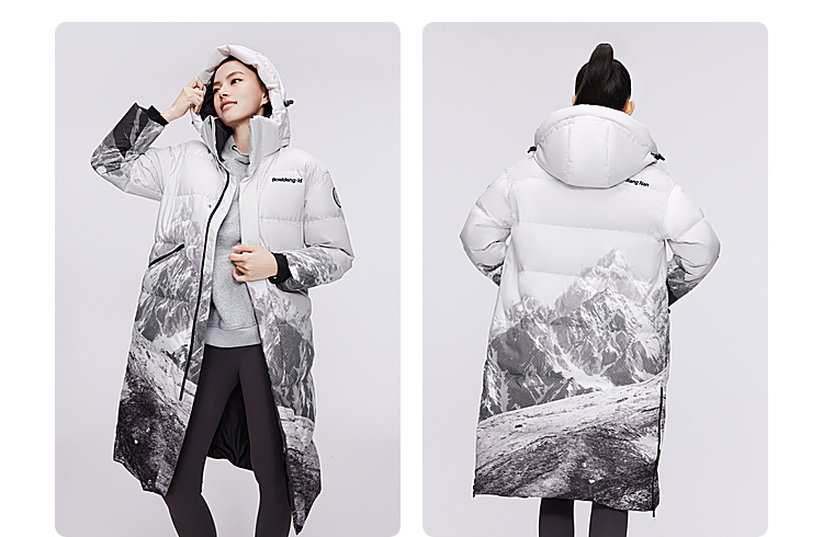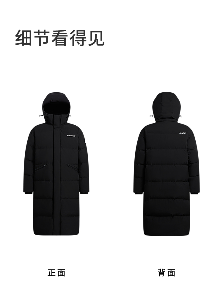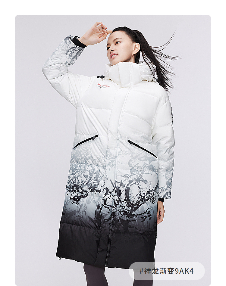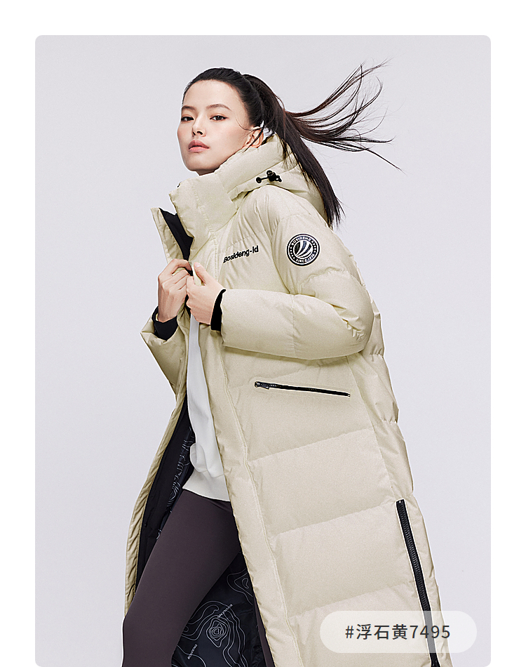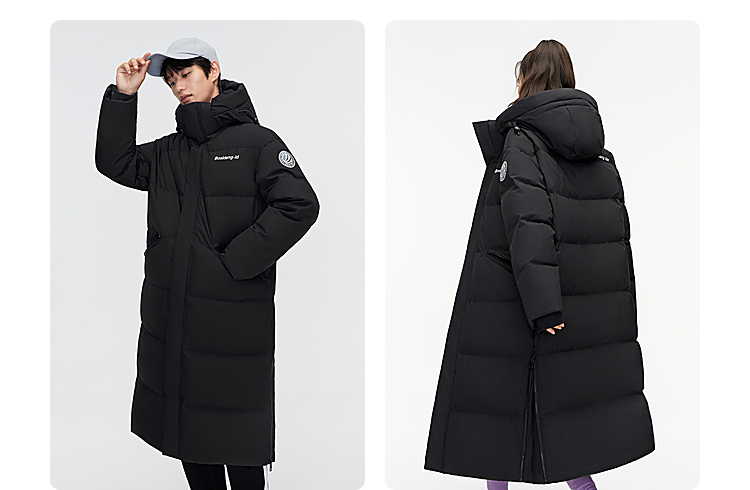 设计点:大长款满足冬季不同人群需求,侧边拉链穿脱方便不束缚,胸前绣花,3D标识及树脂辅料,彰显时尚运动感,严选90%新国际羽绒,轻盈保暖。