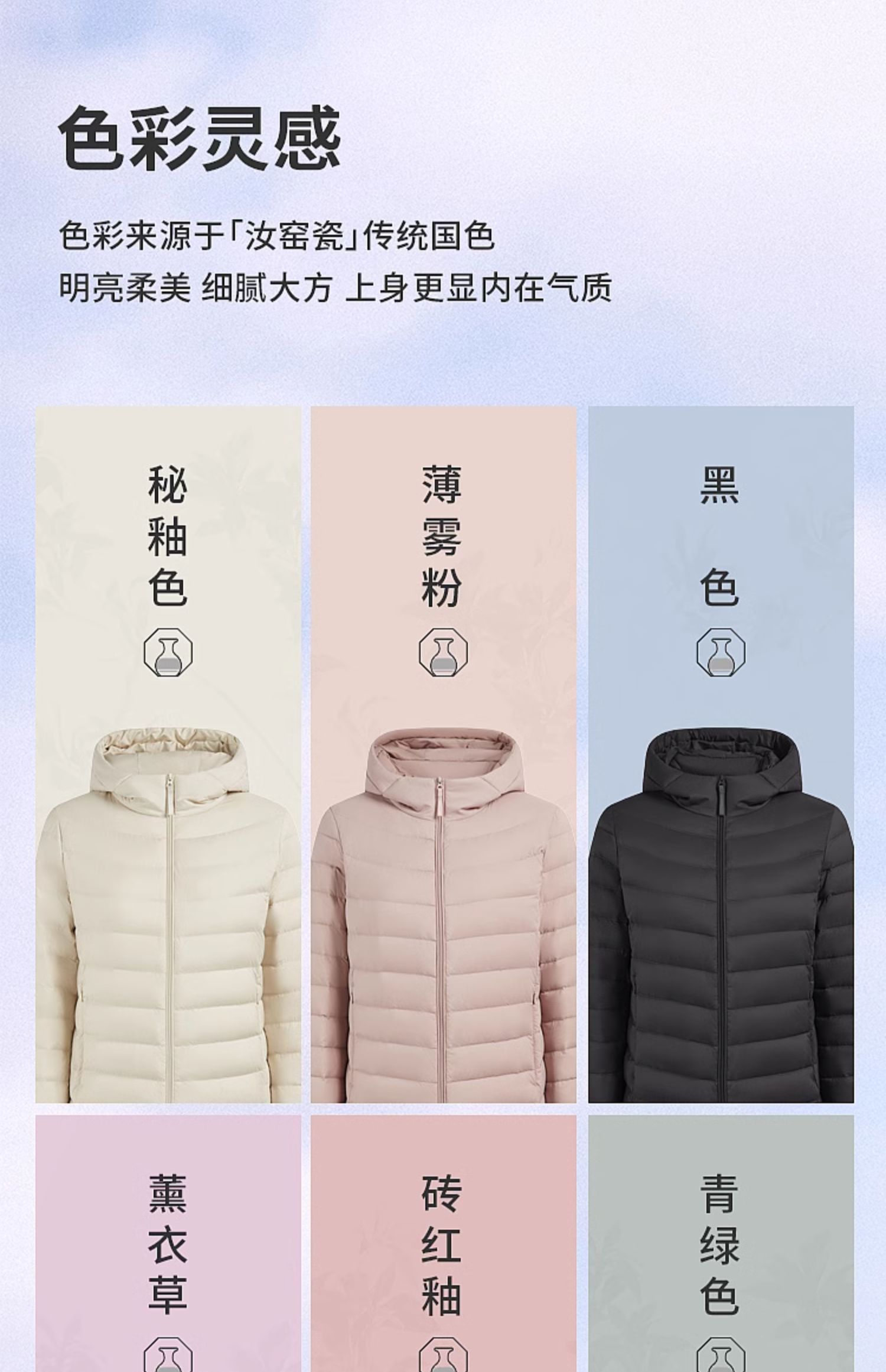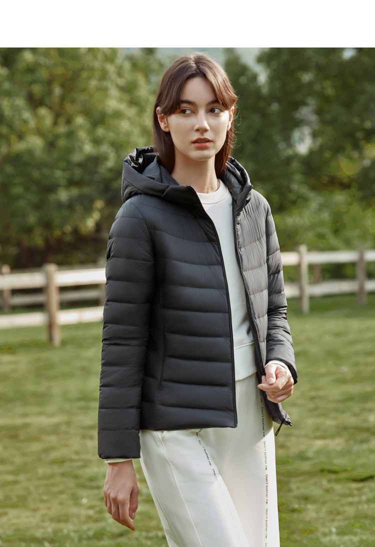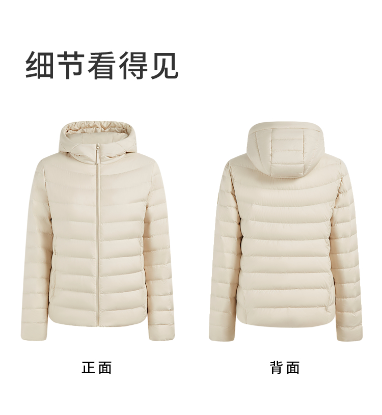 设计点:连帽设计款式简约百搭,精选经典流行色,收纳袋设计,轻巧便携。