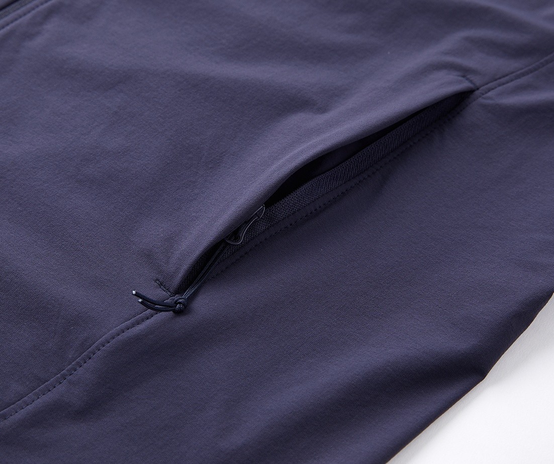 设计点:常规版型易于搭配轻量叠穿,四面弹面料让衣服轻盈透气,富有弹性而且采用防水处理应对多种环境,防风防雨+抗紫外线等特点,拼接剪裁,确保活动自如.