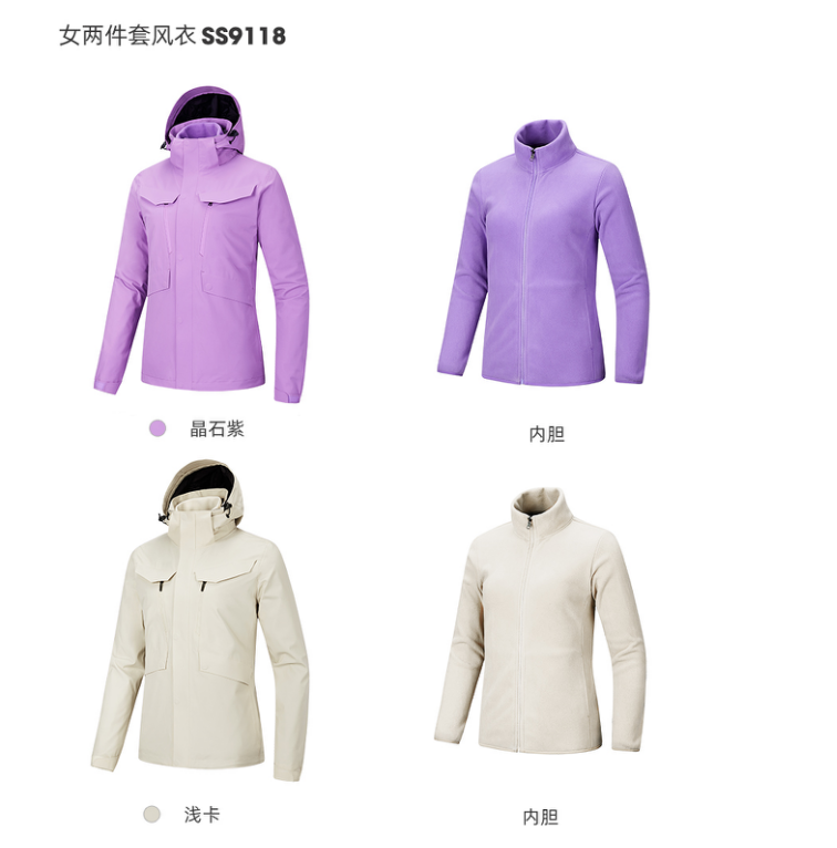 设计点:防风防水三合一可拆卸的两件套风衣,接缝全压胶,内里是抓绒内胆又保暖是户外徒步登山提供硬核防护力,具备了防水防风透湿等功能。